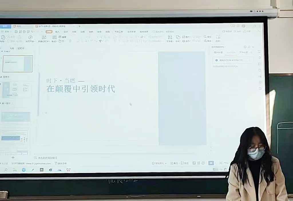 李梦佳同学以《时下·当燃-在“颠覆”中引领时代》为题,分享了当下全新的观念和设计想法。