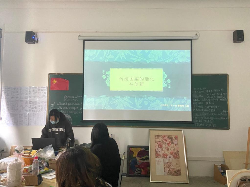 工艺美术11901班韦雪清组的几位同学对比分析了中国装饰图案和国外装饰图案在造型、色彩和文化内涵上的不同,并结合自身的设计案例,让大家对中国传统图案有了多角度的认知。