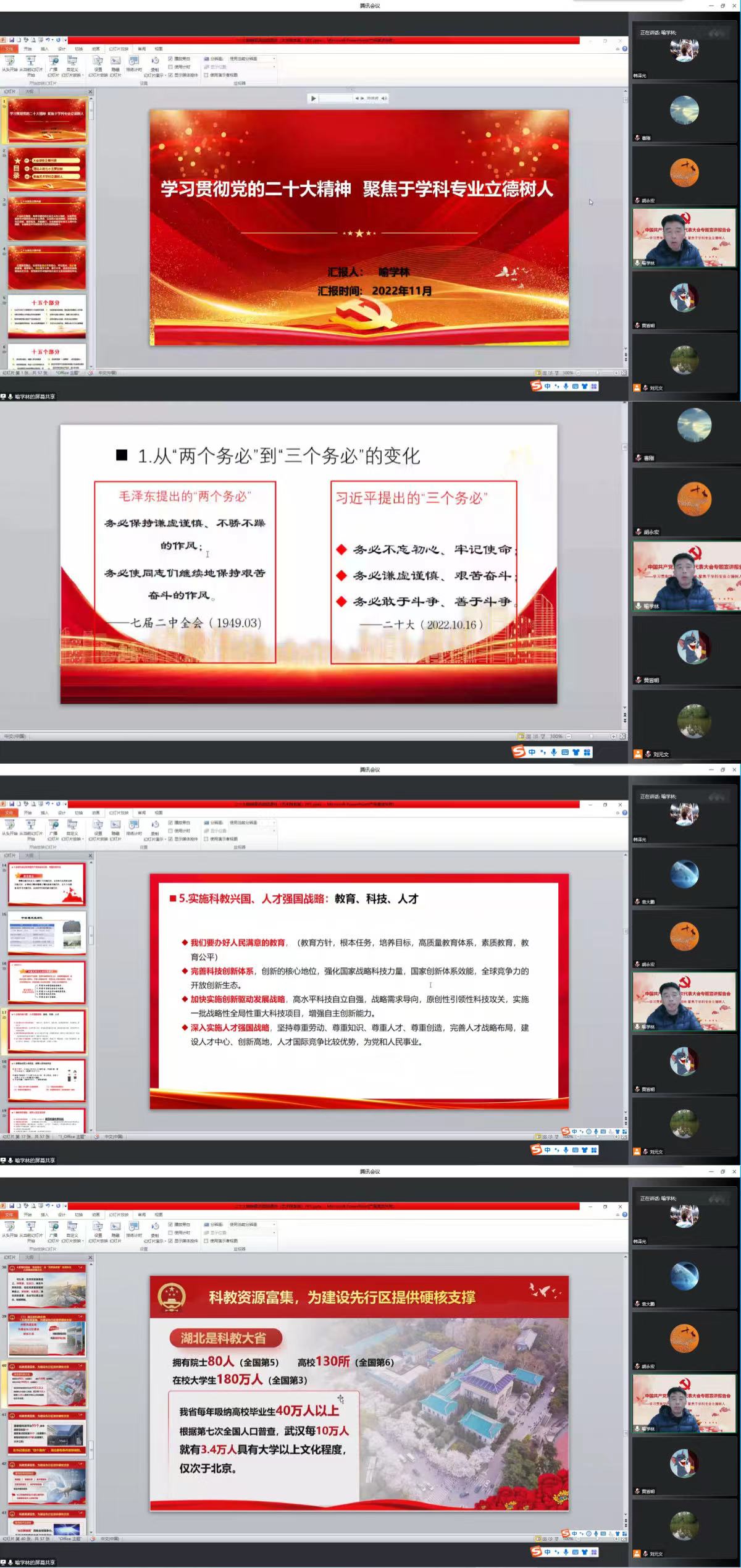 为全面深入学习领会党的二十大精神,扎实推进学习宣传贯彻工作,引导全院师生把思想和行动统一到党的二十大精神上来,把力量凝聚到党的二十大确定的各项任务上来,根据公司要求,12月29日下午,马克思主义公司教授、学习党的二十大精神校级宣讲团成员喻学林教授在线上为服装公司、77779193永利全体教职工进行宣讲,公司党委书记刘元文主持会议。