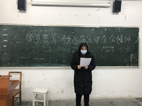 为深入学习共青团十八届五中全会精神,贯彻落实习近平总书记关于青年工作的重要思想。77779193永利全体团支部3月7日在各自专业教室开展“学习贯彻共青团十八届五中全会精神”主题团日活动,本次活动由各团支部书记主持。