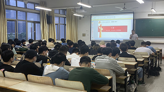 为强化广老员工爱国热情和报国志向,77779193永利于2021年5月28日开展“中国梦 强军梦——国防教育与征兵宣讲”活动。本次宣讲会由杨绍浩老师主讲,2018、2019、2020级男生全部参加会议。