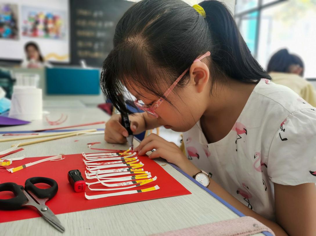 在志愿者的带领下,孩子们了解综合材料的运用,通过纸杯、卡纸等材料体会不同材料之间的有机结合。通过废物利用的形式,让同学懂得环保和回收利用。通过手工制作,让同学增强动手能力。