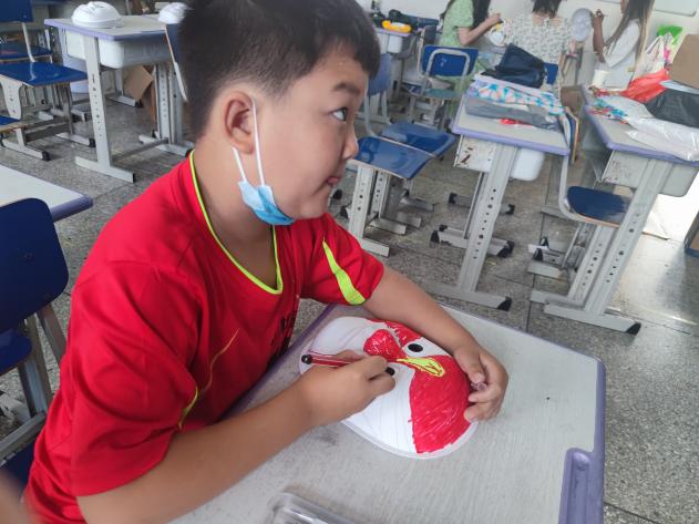 随后志愿者老师们逐一带着孩子们在面具上进行脸谱绘制,进一步感受京剧脸谱的重彩油墨,经过一上午的创作,一幅幅生动形象的京剧脸谱跃然于孩子们灵动的笔尖,孩子们兴奋于自己完成这精美作品的成就感。