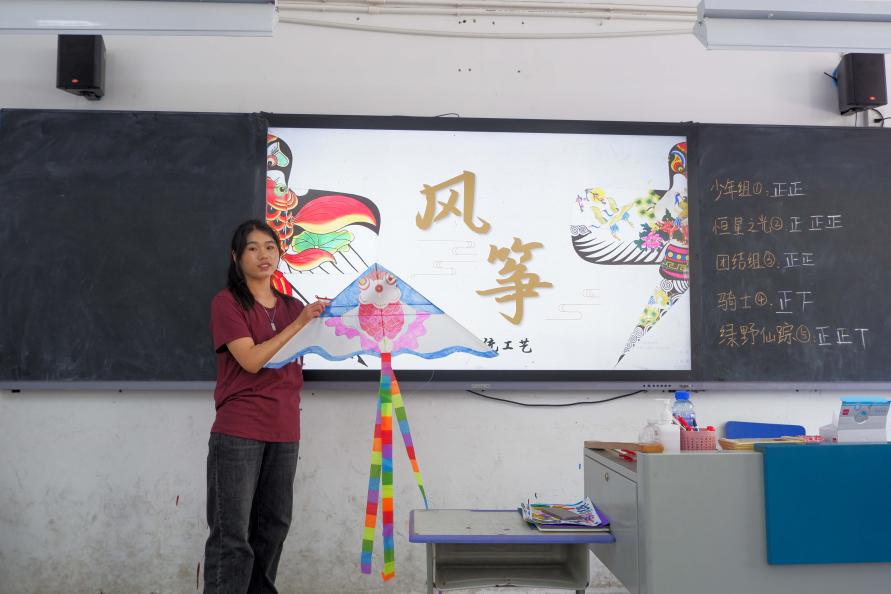 7月15日,七彩假期志愿服务活动的最后一天,志愿者刘凤以放飞梦想为主题,带领孩子进行手工风筝制作。寄托志愿者们对于孩子的美好祝福与殷切希望。