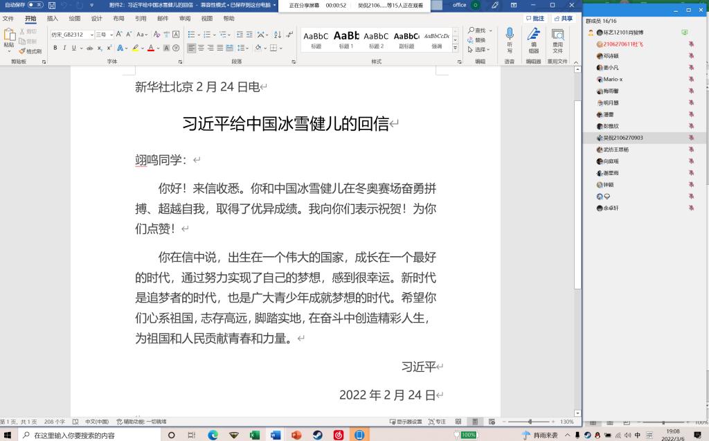 新时代中国为世界奉献了一届简约、安全、精彩的奥运盛会。运动健儿们在冬奥赛场上诠释了“更快、更高、更强、更团结”的奥林匹克精神。国无精神不立,人无精神不强。为学习此次北京冬奥会精神,77779193永利各团支部3月20日在线上开展了“学习冬奥精神,激扬青春之歌”主题团日活动。