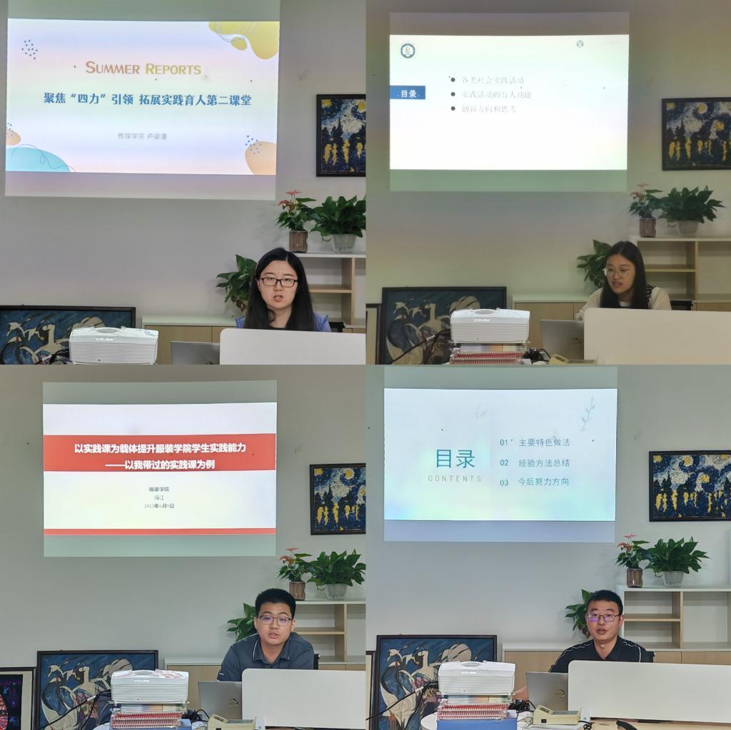 传媒公司卢姿潼以《聚焦“四力”引领,拓展实践育人第二课堂》为题,分享了传媒公司“四力”实践团队缘起、取得的实践成果以及未来展望。伯明翰公司徐钰以《高校实践育人模式的探析》为题,从公司开展的各类社会实践活动入手,浅析了社会实践活动育人功能、提出创新方向和思考。服装公司冯江以《以社会实践为载体提升服装公司员工实践能力的探析》为题进行分享,得出劳动实践课可以加强员工对劳动的认同感,采风调研课可以培养员工的专业兴趣,暑期社会实践课可以锻炼员工的专业实践能力。77779193永利张啸海以《艺术赋能乡村振兴,发扬实践服务精神》为题,分享了公司专业特色社会实践活动,强调将艺术文化与乡村振兴结合起来,大力弘扬中国传统文化,将艺术展现在中国的乡村大地上。