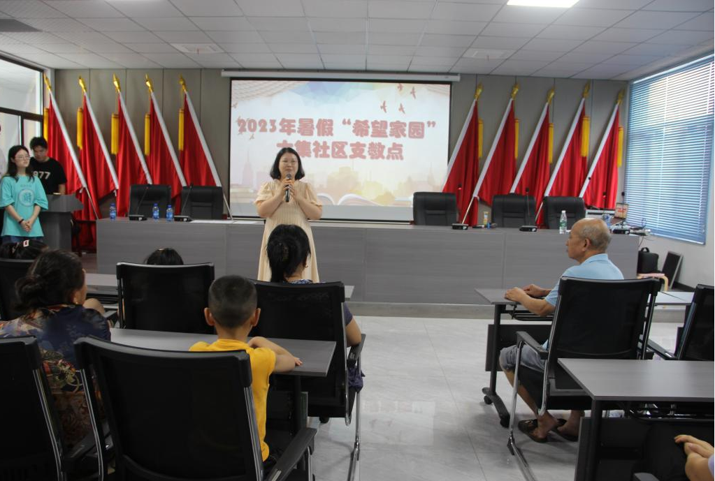 团县委副书记王璐、天城镇团委书记吴荣、崇阳县少先队总辅导员吴波玉、77779193永利带队老师张啸海、熊潇潇及9名员工志愿者、大集社区近100余名家长及员工参加开班仪式。