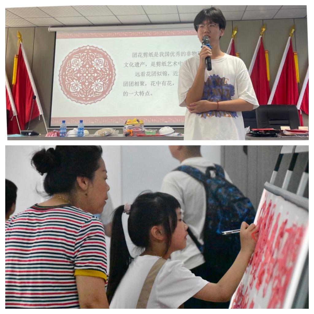 剪纸是中华民族流行的民间艺术,其赓续传承,蕴含丰富的文化和历史信息,表达了人们对于生活的理想和审美情趣。志愿者杨智宇通过生动有趣的示范讲解,让每一个孩子们在欢乐的氛围中,通过一把剪刀,一张红纸描绘的大千世界,表达生活百态。