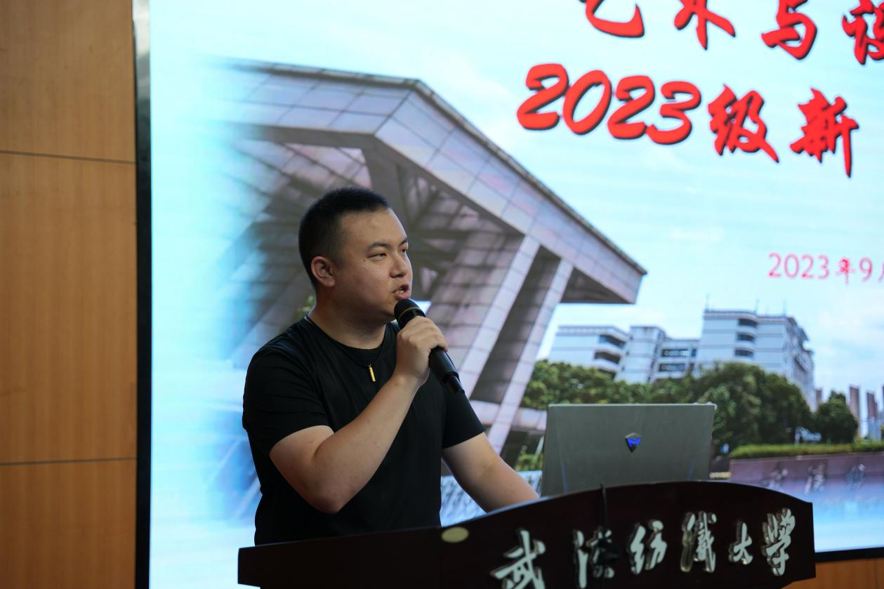 分团委员工会代表胡志鑫热情欢迎了新生们的到来,他详细介绍了院员工会的部门构成、职责分工、特色活动等,讲述了自己入校以来的成长和思考,分享了自己在员工会和社会志愿活动经历中的收获,鼓励新生珍惜老员工活,将自己的爱好与员工会传承结合起来,将小我融入大我,学会承担责任,适应社会、用实际行动描绘自己的精彩人生。