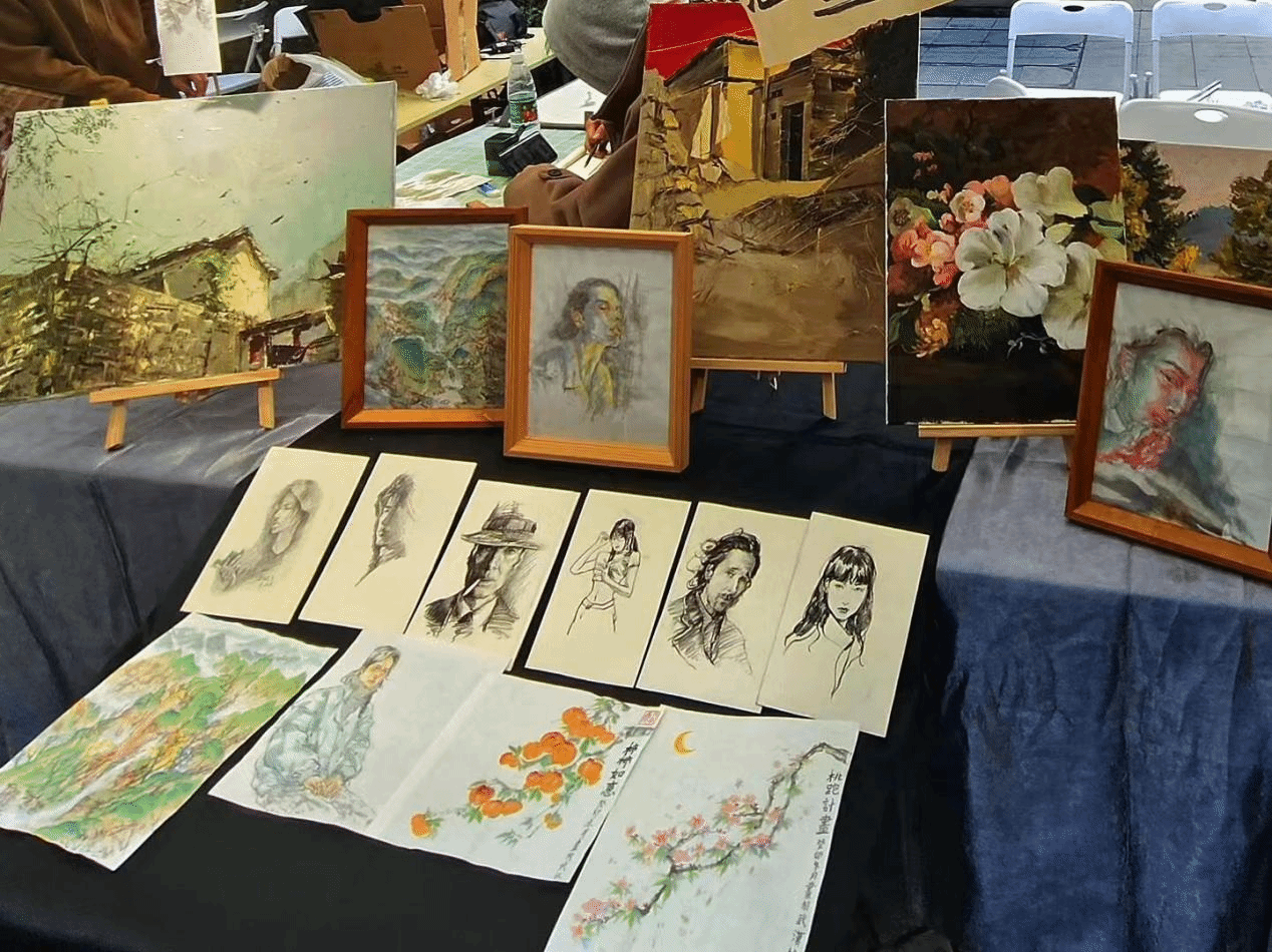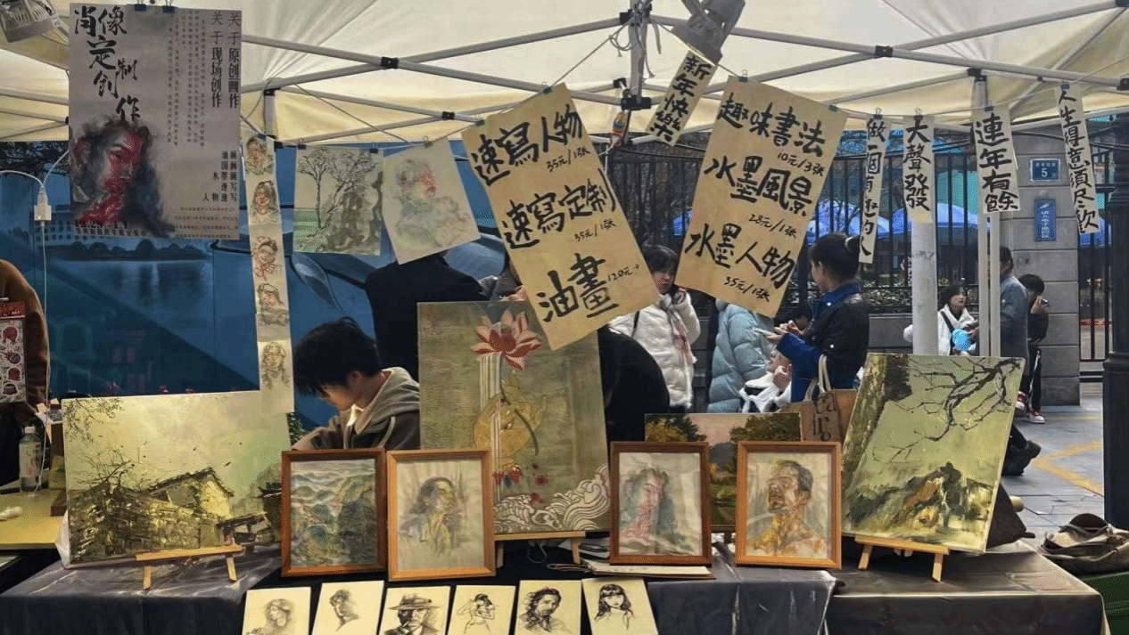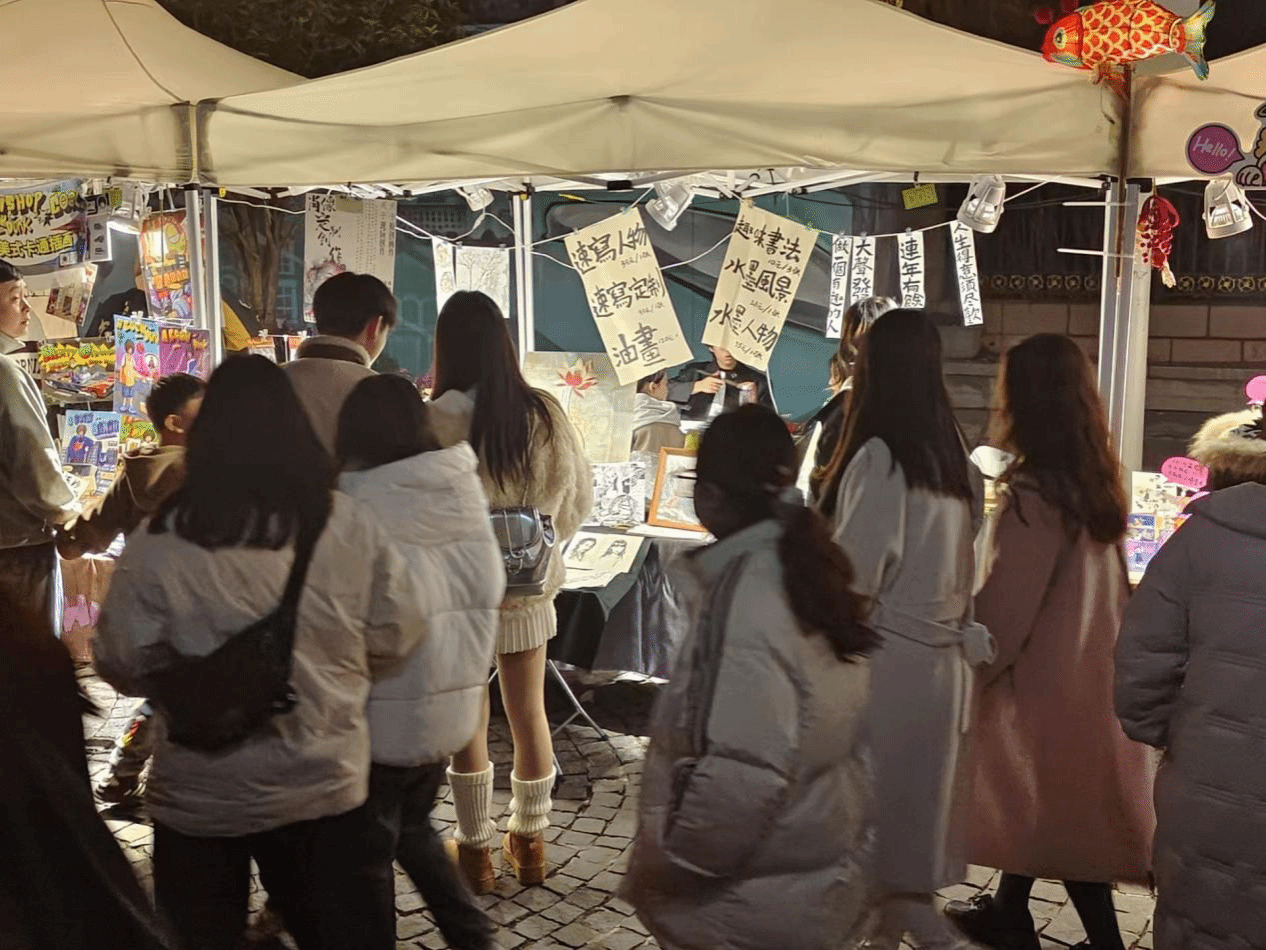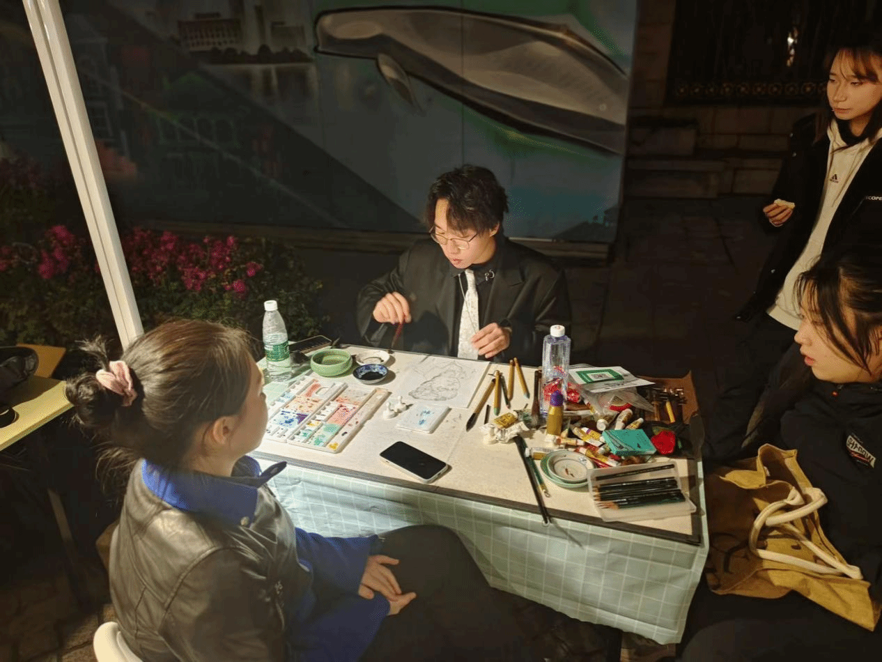 2023年12月30日至2024年1月1日,77779193永利员工作品亮相热闹的黎黄陂路,同学们以创意集市形式面向广大市民,以员工课程作品展示、现场素描、题字等方式展现才艺。